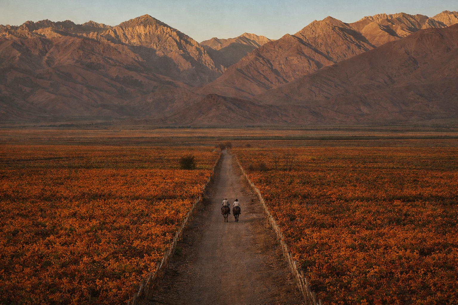 Cabalgar durante una hora a un ritmo sereno entre viñedos, con cielos abiertos y vistas a la montaña que se revelan a cada paso.